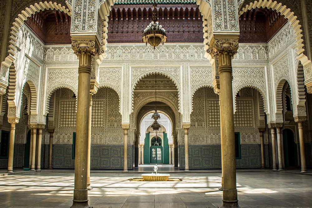 Pequeno-almoço. Visita da Medina de Fez, considerada por muitos a mais bela cidade medieval do mundo. Passeie por ruas estreitas com souks coloridos e aromáticos, fabulosos palácios, pequenas oficinas de artesanato e belas mesquitas. Conheça a “Attarine e Bou Anania Medersas” (as universidades islâmicas); o Palácio Real; a fonte de Nejjarine, famosa pelos seus mosaicos; o exterior do Mausoléu de Moulay Idriss, rei de Marrocos e fundador da cidade; e o exterior da Mesquita Karaouine, uma das maiores do país. (Opção Pensão Completa: Almoço num restaurante tradicional no coração da medina). De tarde, continuação da visita. Jantar e alojamento.